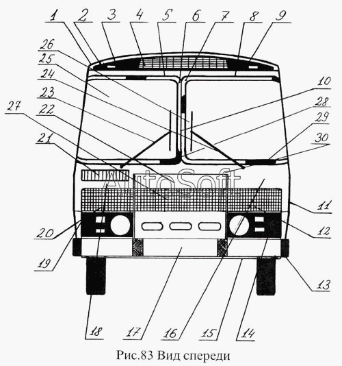 | ПАЗ | ПАЗ-3205 (2001) | 3205-5313044 | Решетка крышки переднего люка | Вид спереди |