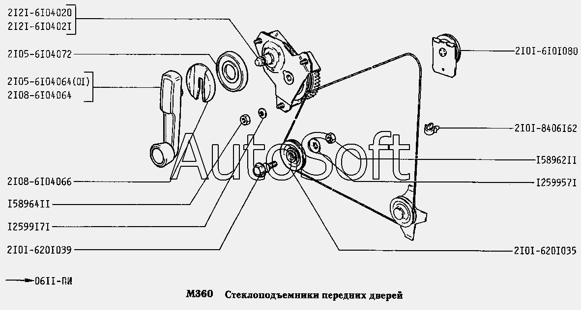 | ВАЗ | ВАЗ-1111 "ОКА" (1998) | 2105-6104064 | Ручка стеклоподъемника | Окна передних дверей |