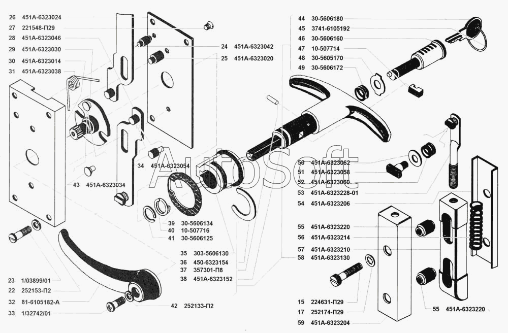 | УАЗ | УАЗ-3741 | 81-6105182-А | Ручка внутренняя | Механизм перемещения стекла передней двери, замок и ручки передней двери | |