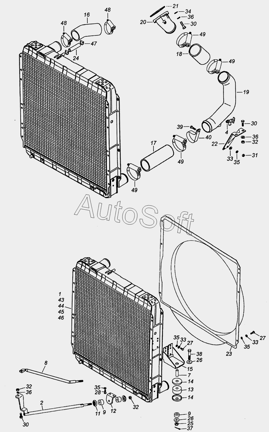| Камский автозавод | 43501 (4х4) (2007) | 54115-1303026 | Рукав | 54115-1300023-10 Установка радиатора |
