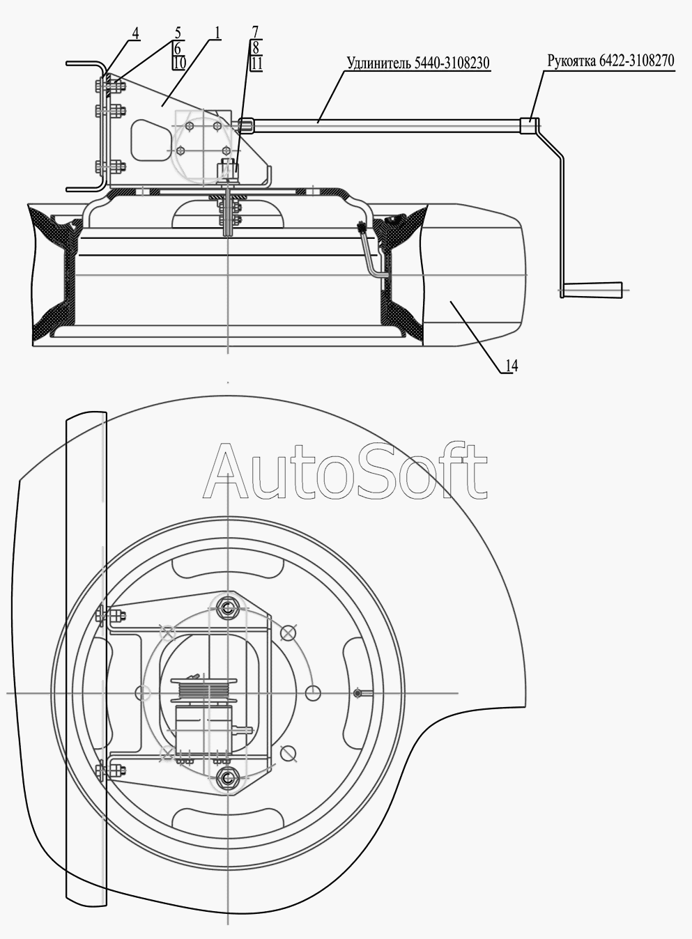 | МАЗ | Общий (см. мод-ции) | 6422-3108270 | Рукоятка в сборе | Установка запасного колеса МАЗ-5516 | |