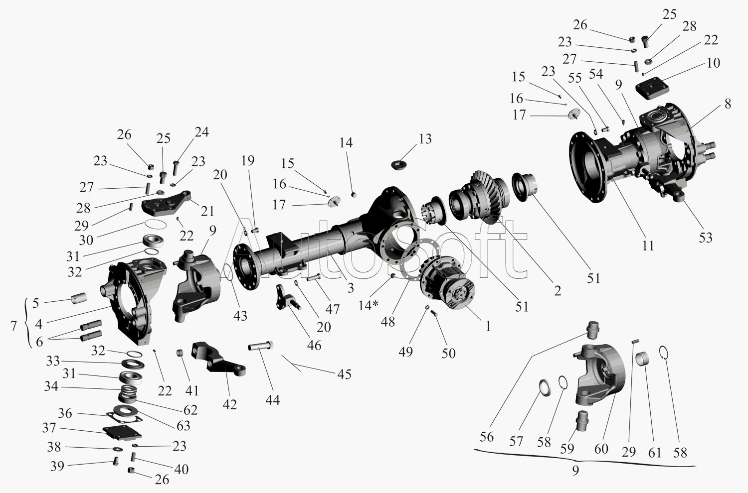| МАЗ | МАЗ-543403, 641705, 641708 (2010) | 5434-2304107 | Рычаг левый | Мост передний. Картер | |