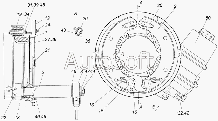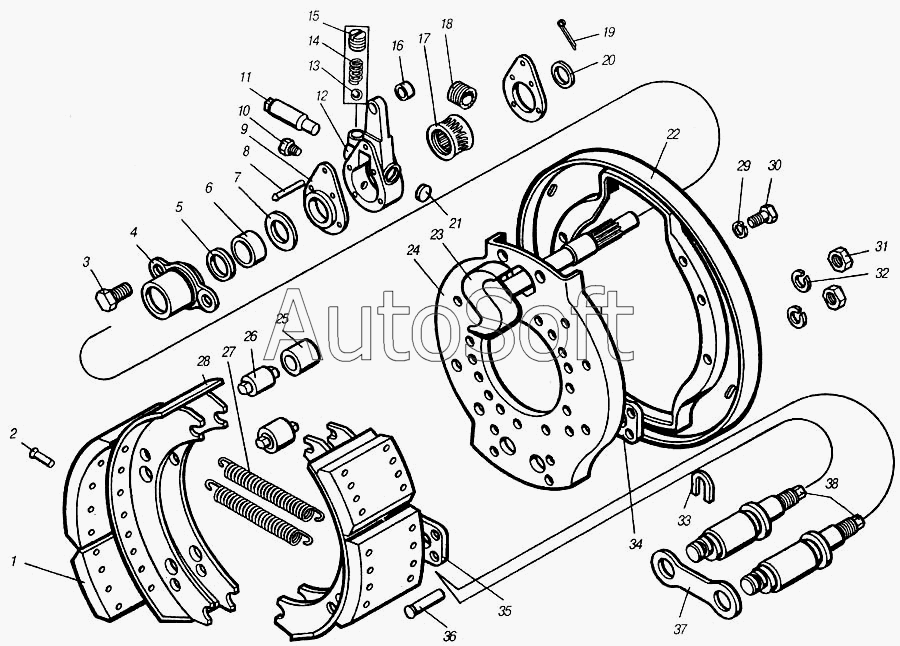 | Камский автозавод | 5511 (2003) | 5320-3501136 | Рычаг регулировочный заднего тормоза в сборе | Механизм тормозной переднего колеса правый и левый | |
