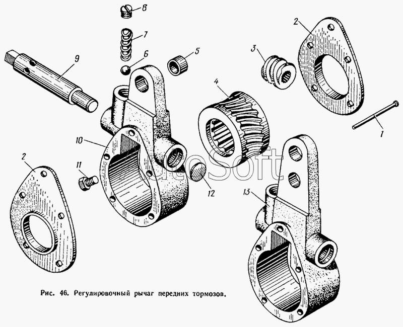 | МАЗ | МАЗ-500А | 500-3501136 | Рычаг тормоза регулировочный в сборе | Передний ножной тормоз | |