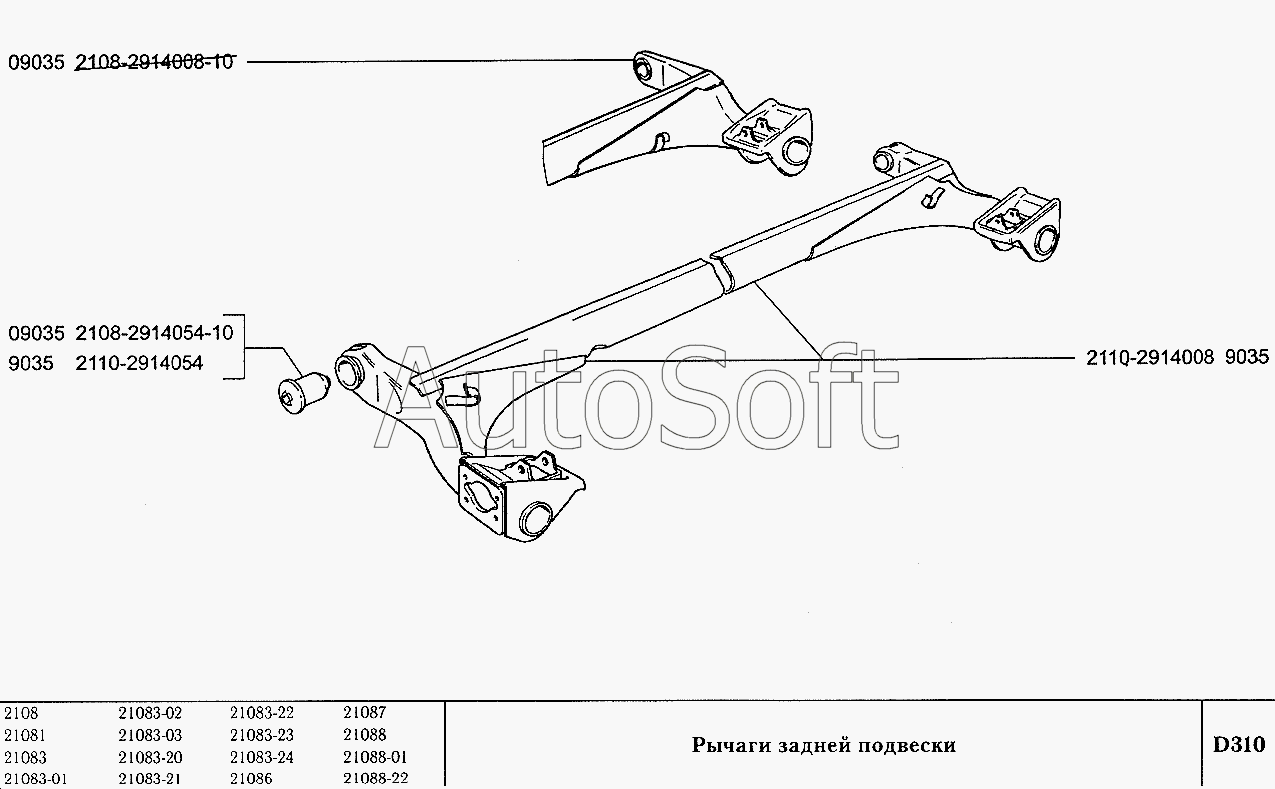 | ВАЗ | ВАЗ-2108 (2002) | 2110-2914054 | Шарнир рычага | Рычаги задней подвески |
