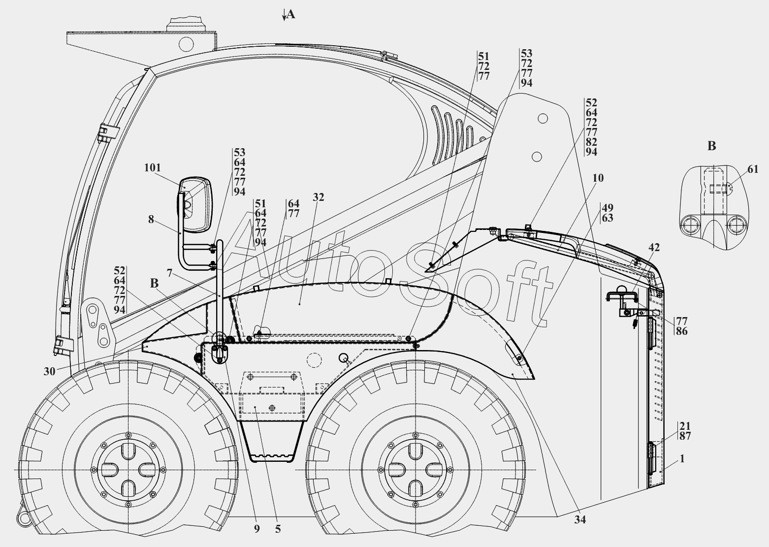 | Амкодор | Амкодор-211Е (2014) | 211.84.05.454-Б | Лист | Облицовка 211.84.00.000, 211.84.00.000-01 | |