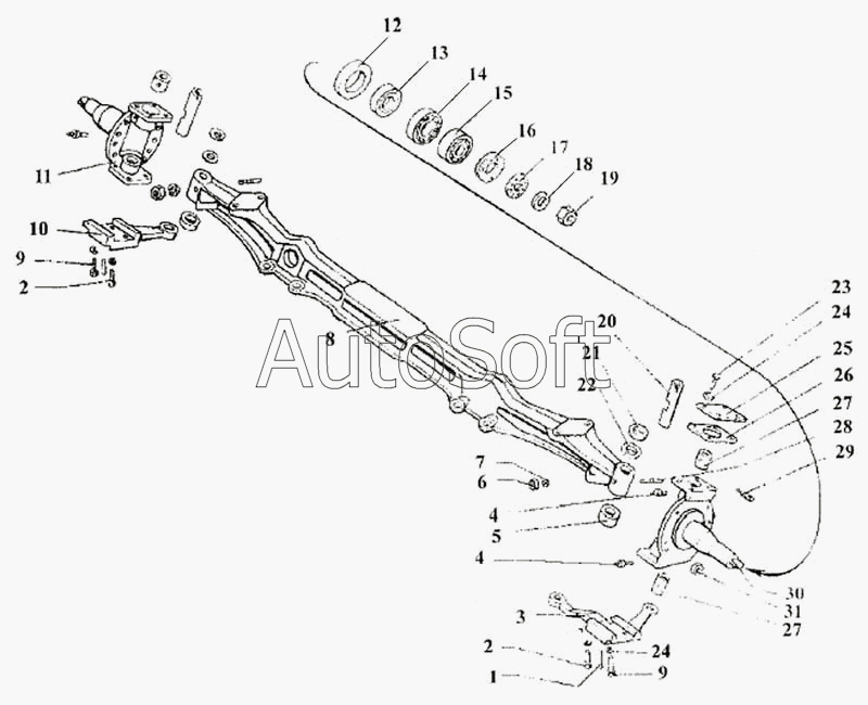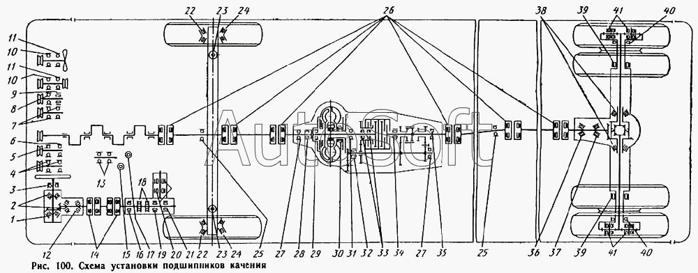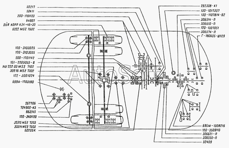 | ЛАЗ | ЛАЗ 695Н (1976) | 7611 | Подшипник роликовый конический 55х120х46 (По номенклзтуре ЗИЛа № 120-3103035) | Схема установки подшипников | |