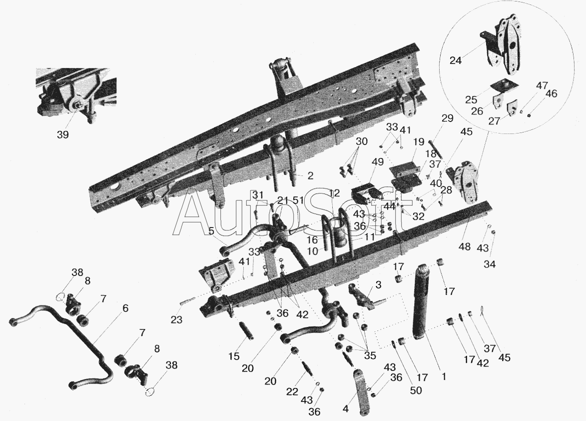 | Стремянка рессоры задней 516 (L=455мм, гайка М27) с гайками | |