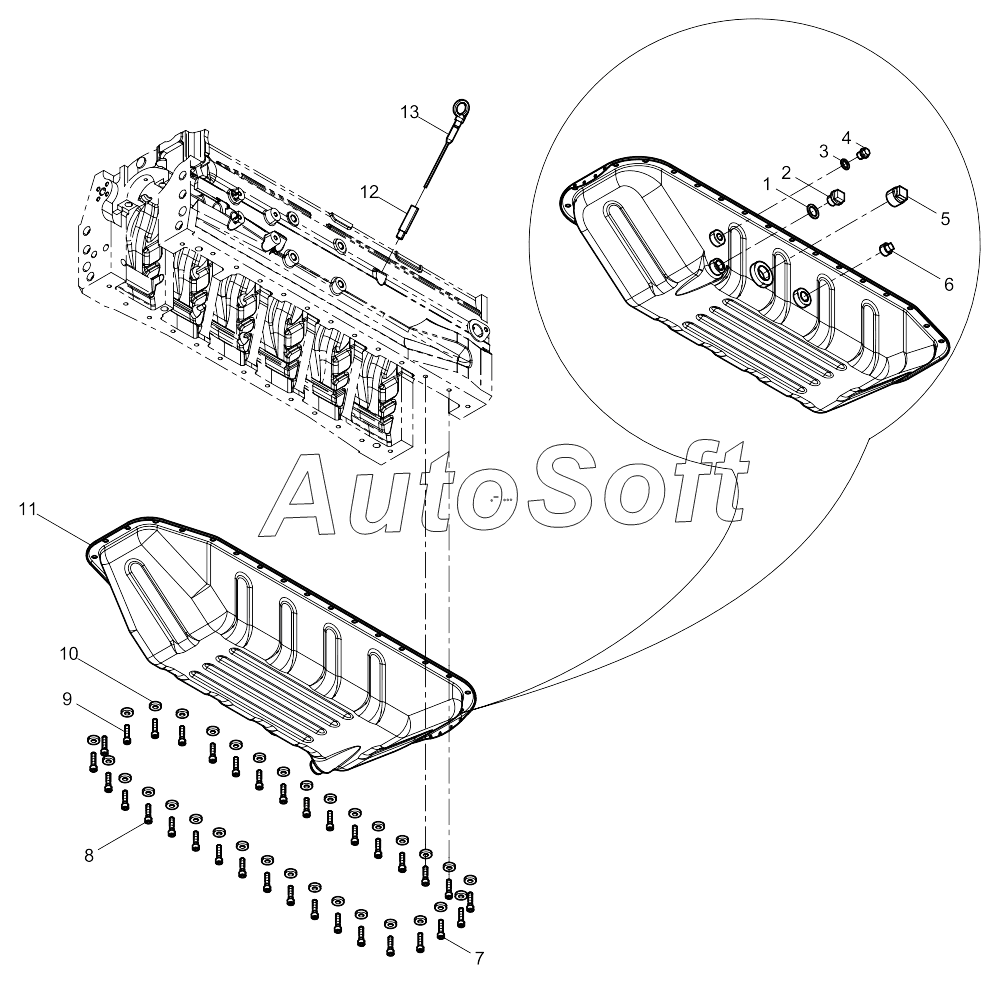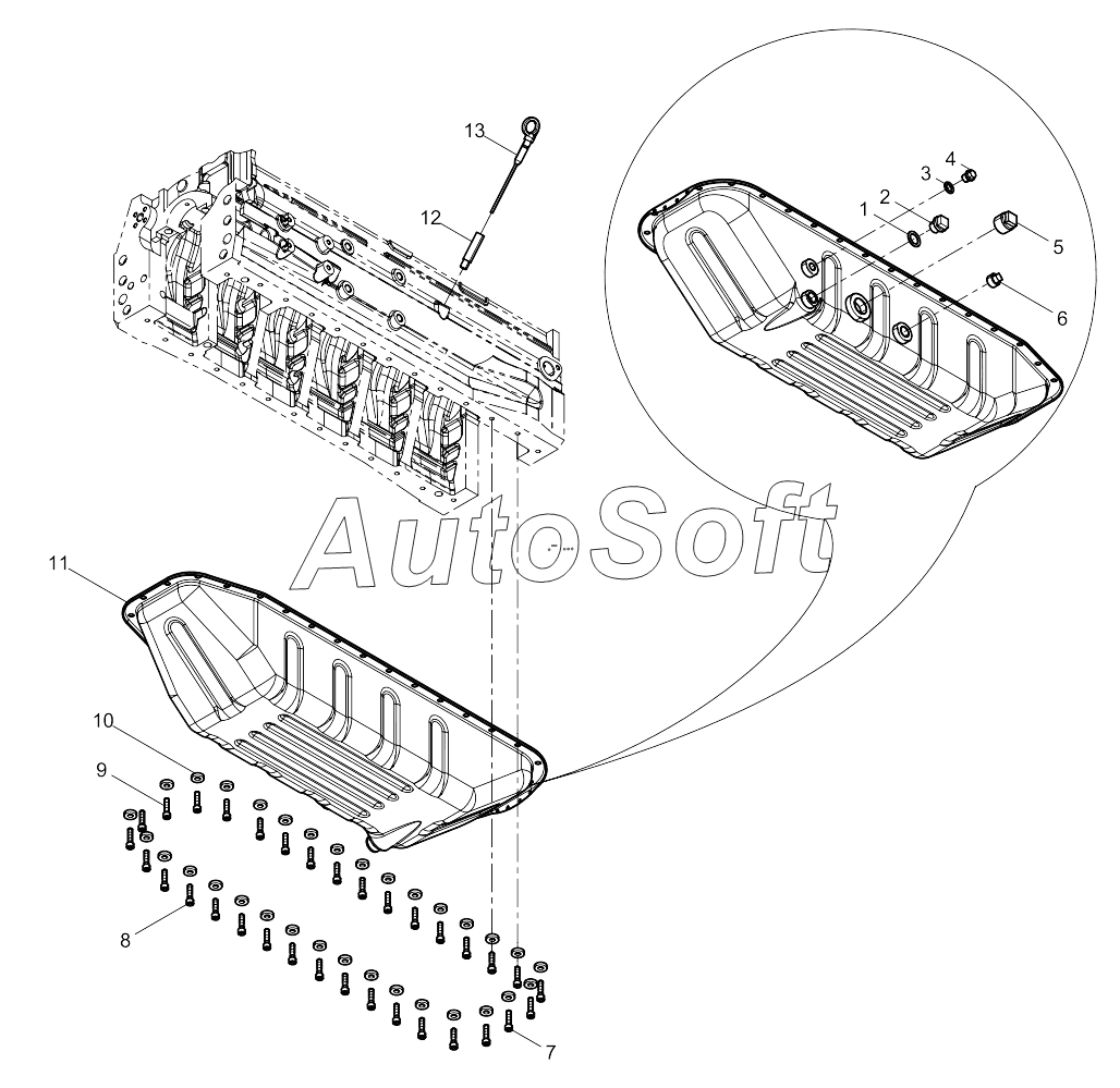 | Weichai | 6M11 DHM11D0002 (2010) | 13023363 | Составная уплотняющая шайба | Oil Pan Assembly |