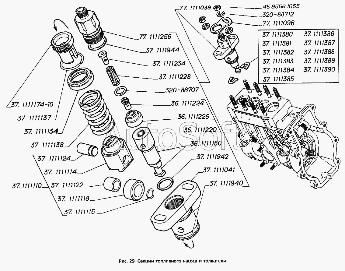 ГАЗ | ГАЗ-3306 (1994) | 37.1111390 | Шайба регулировочная толщиной 1,0 мм | Секции топливного насоса и толкатели |