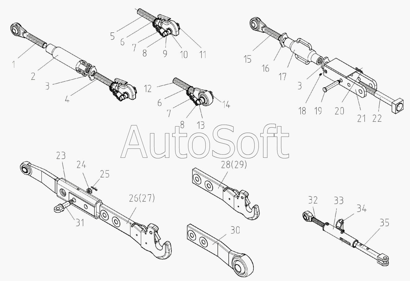 Ось тяг нижней задней навески | |