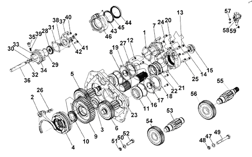 DongFeng | DFL4251A-T04-930-00CA (2007) | 12JS200T-1707106 | Auxiliary Gearbox Main Shaft Reduction Gear | 1700010-T0509-05 Rear Cover Assembly, Auxiliary Gearbox Cylinder Assembly |