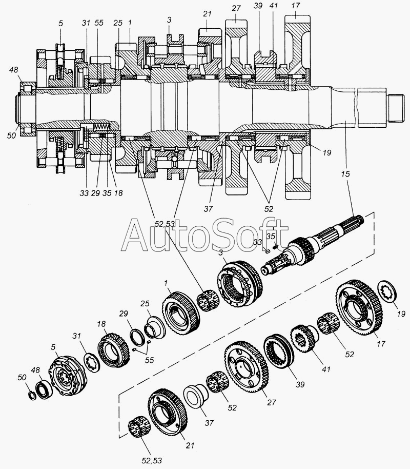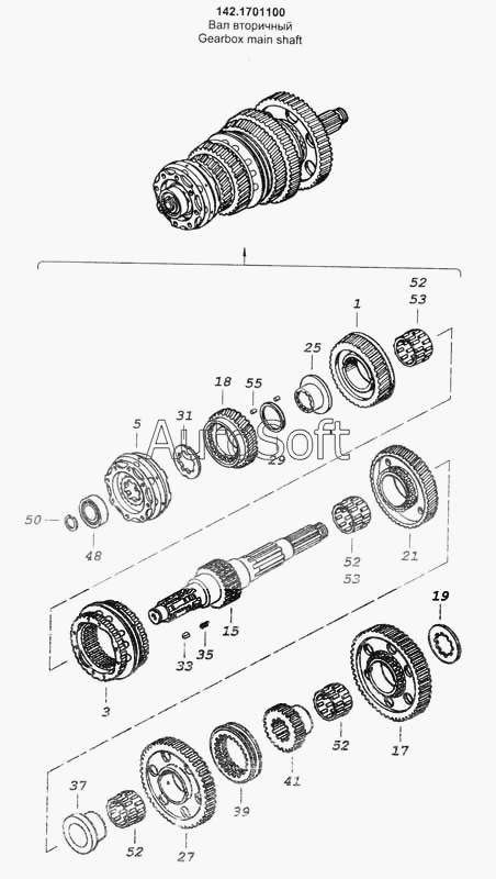 | Камский автозавод | 53229 (Евро 2) (2010) | 142.1701115 | Шестерня четвертой передачи вторичного вала | 142.1701100 Вал вторичный |
