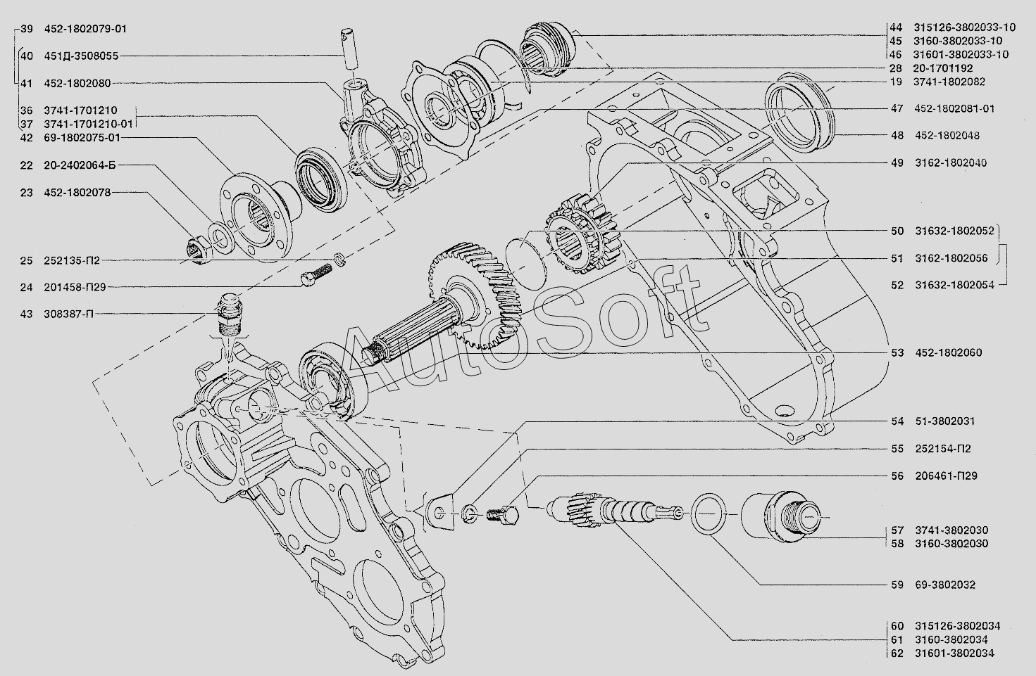 УАЗ | УАЗ-37419 (2009) | 3160-3802034 | Шестерня привода спидометра ведомая (при установке четырехступенчатой коробки передач) | Коробка раздаточная |
