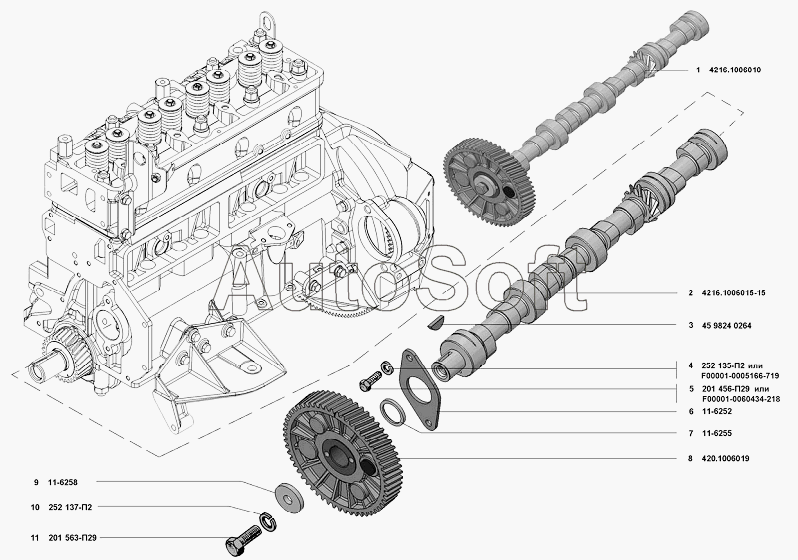 УМЗ | УМЗ-А274 | 420.1006019 | Шестеpня pаспpеделительного вала с отметчиком в сборе | Вал распределительный | |