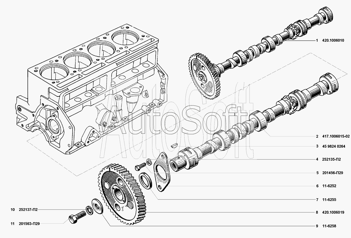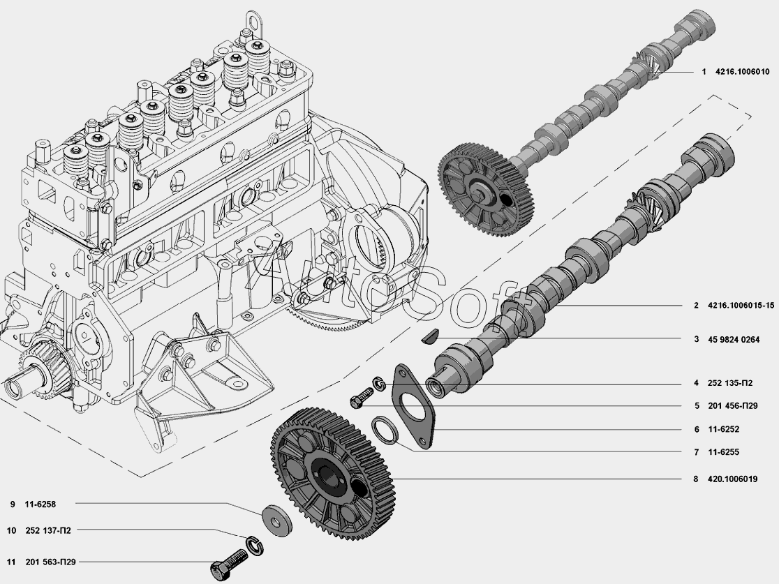 УМЗ | УМЗ-4213, 420 (2007) | 420.1006019 | Шестеpня pаспpеделительного вала с отметчиком в сборе | Вал распределительный | |