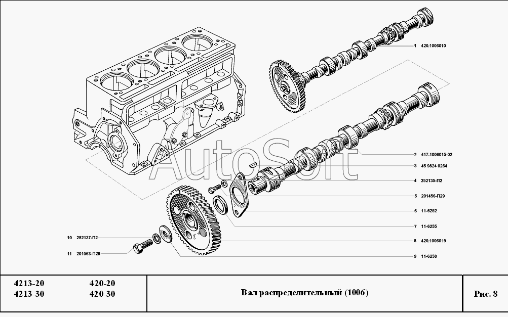 | УМЗ | УМЗ-4213, 420 (2007) | 420.1006019 | Шестеpня pаспpеделительного вала с отметчиком в сборе | Вал распределительный |