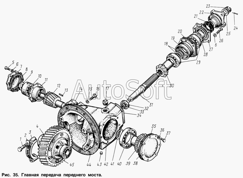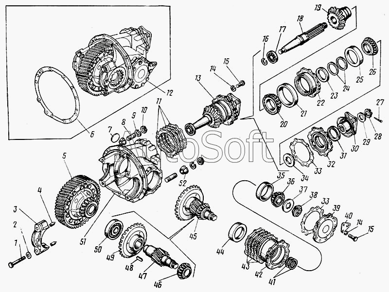 КрАЗ | КрАЗ-255 | 214-2302015-Б | Картер редуктора с крышками подшипников дифференциала | Картер и крышки редуктора главной передачи переднего моста | |