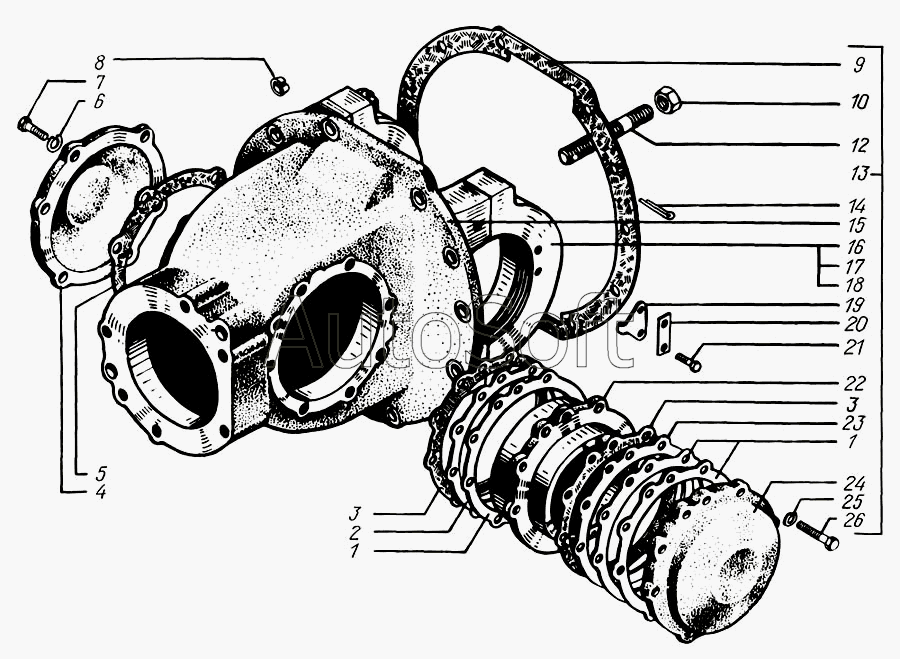КрАЗ | КрАЗ-260 | 260-2302015-10 | Картер редуктора с крышками подшипников дифференциала | Редуктор переднего моста с крышками | |