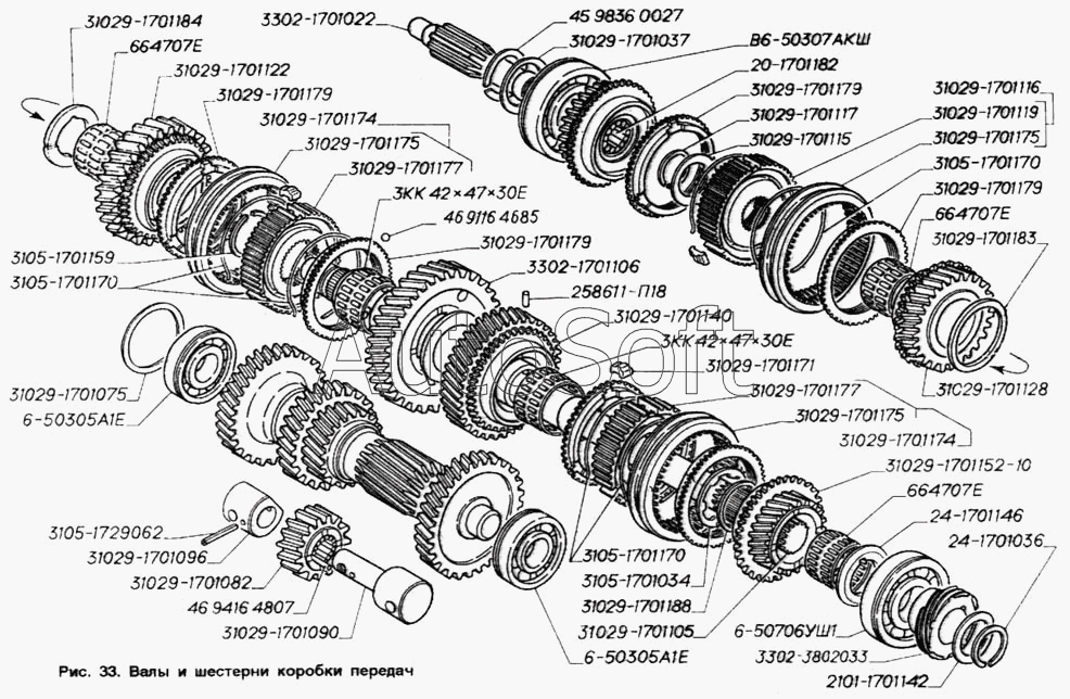 ГАЗ | ГАЗ-3110 | 3110-3802033 | Шестерня привода спидометра ведущая | Валы и шестерни четырехступенчатой коробки передач | |