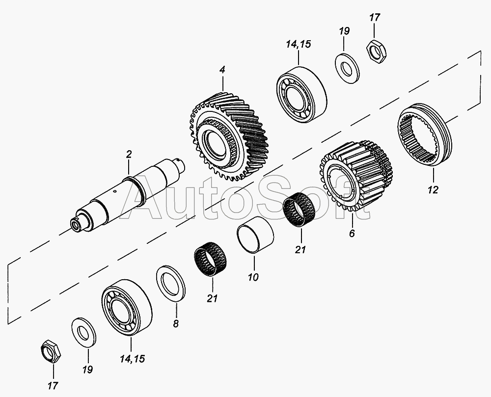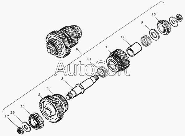 | Камский автозавод | 53228, 65111 (2004) | 43114-1802090 | Шестерня первой передачи промежуточного вала | Вал промежуточный раздаточной коробки |