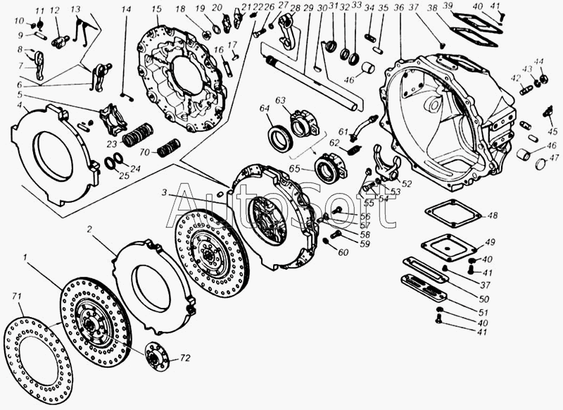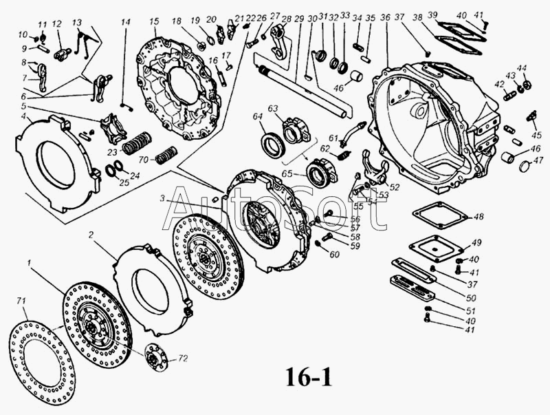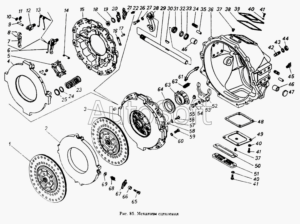Камский автозавод | 5511 (2003) | 14.1601086 | Рычаг оттяжной в сборе | Механизм сцепления |