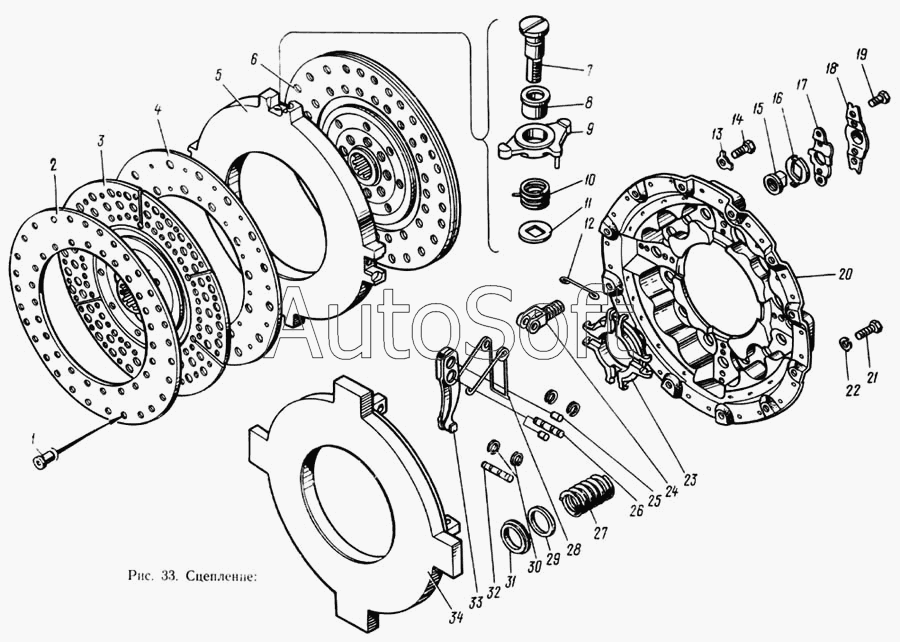 ЗИЛ | ЗИЛ-133ГЯ | 14.1601086 | Рычаг оттяжной с вилкой и пружиной в сборе | Сцепление |