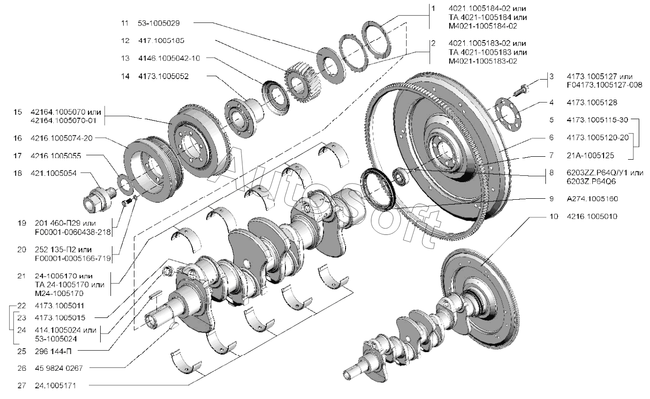 УМЗ | УМЗ-42164 (Евро 4) (2013) | 4216.1005074-20 | Шкив привода вентилятора | Вал коленчатый и маховик | |