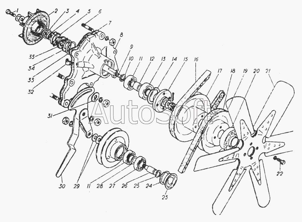 | КАВЗ | КАВЗ-685 (1971) | 53-1307055 | Шкив водяного насоса задний | Водяной насос и вентилятор |