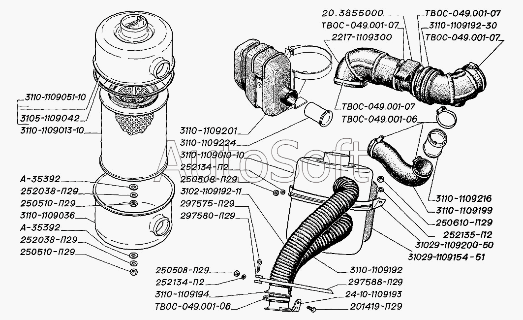 Шланг ГАЗ-31105, 3302 Бизнес дв.ЗМЗ-405, УМЗ-4216 воздухоподводящий