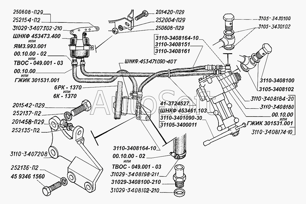 | ГАЗ | ГАЗ-31105 | 3110-3408161 | Рукав высокого давления с наконечником | Насос, бачок и шланги гидроусилителя руля, ремень привода насоса |