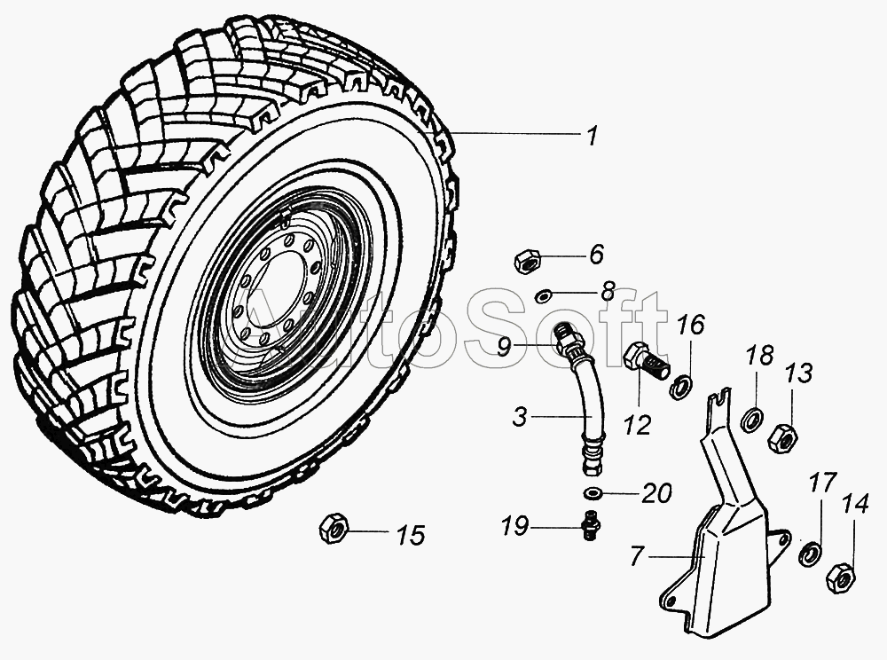 | Наименование: | Шланг 43118-3124186-20 подвода воздуха к шинам (комплект) |