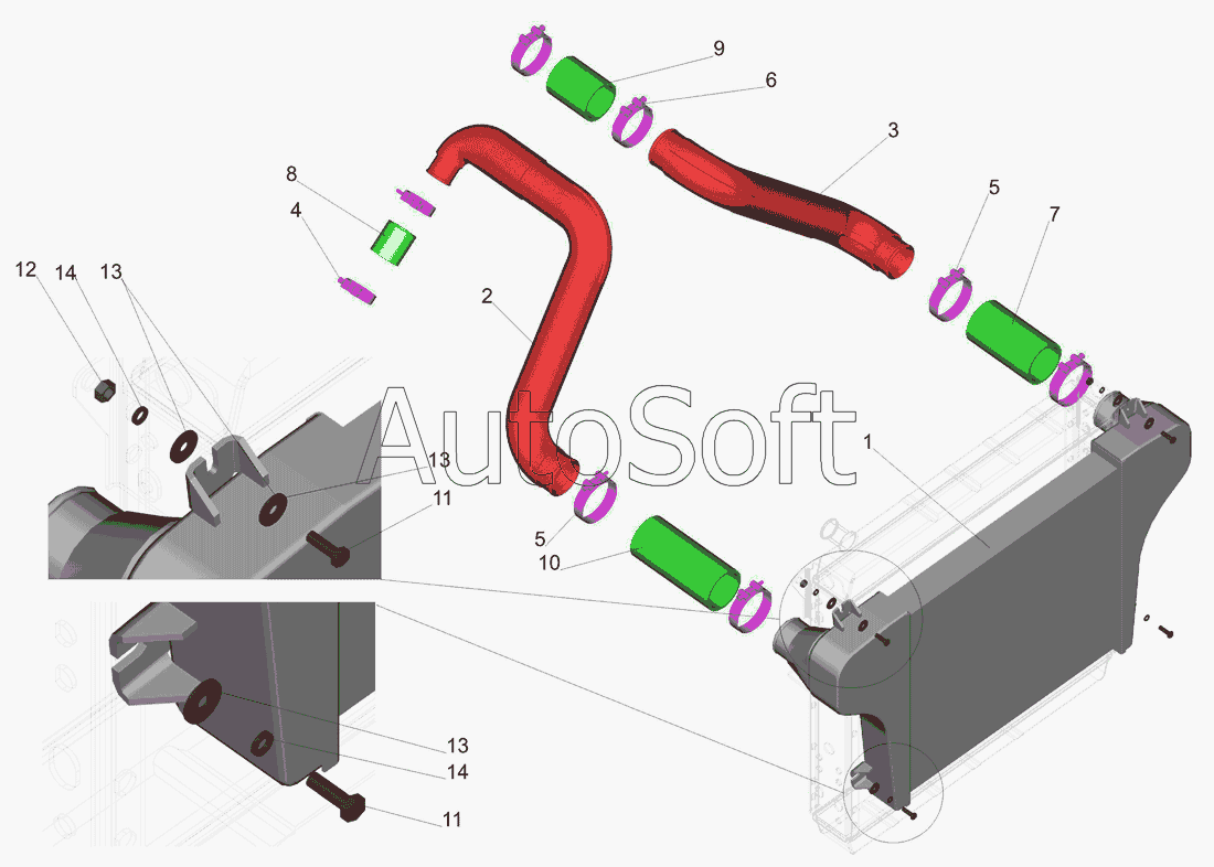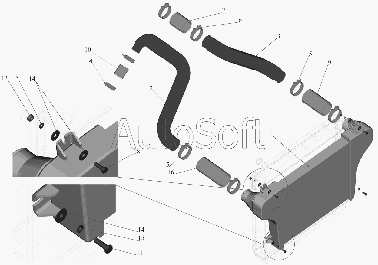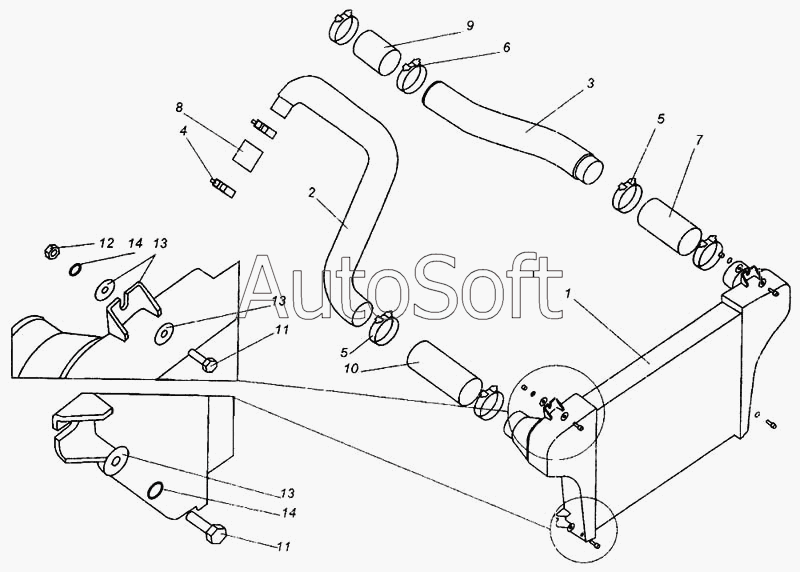 | МАЗ | МАЗ-437041 (Зубренок) (2010) | 4370-1323093-001 | Рукав | Установка системы охлаждения надувочного воздуха 4370-1300040 |