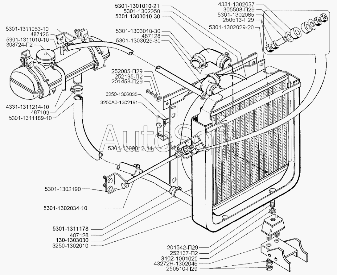 ЗИЛ | ЗИЛ-3250 (2000) | 5301-1303010-30 | Шланг водяного патрубка отводящий | Система охлаждения двигателя |