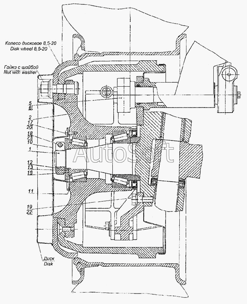 Камский автозавод | 5297 (2004) | 6520-3103009 | Ступица переднего колеса с барабаном, подшипником и манжетой | Ось передняя |
