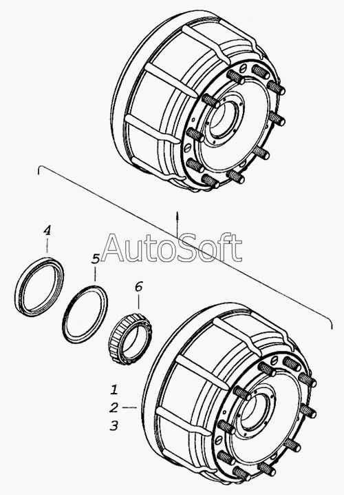 Камский автозавод | 6460 | 6520-3103009 | Ступица переднего колеса с барабаном, подшипником и манжетой | Ступица переднего колеса |