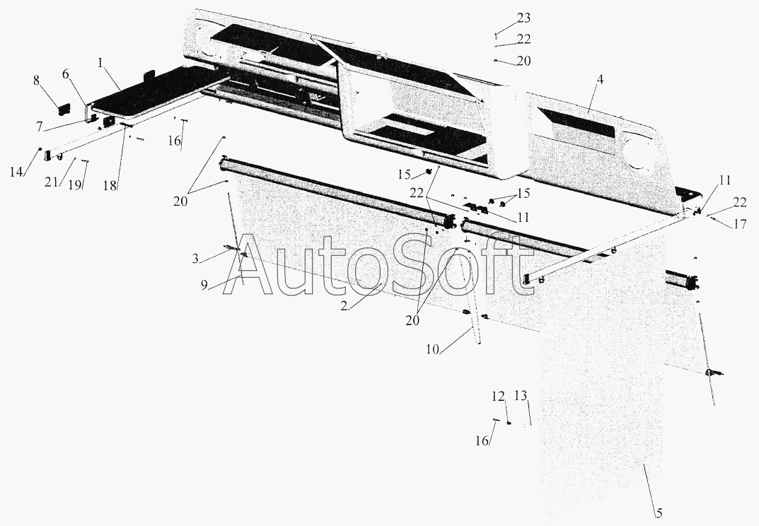 Штанга средняя («V»-образная направляющая) крепления передних противосолнечных шторок кабины (для всех МАЗ)