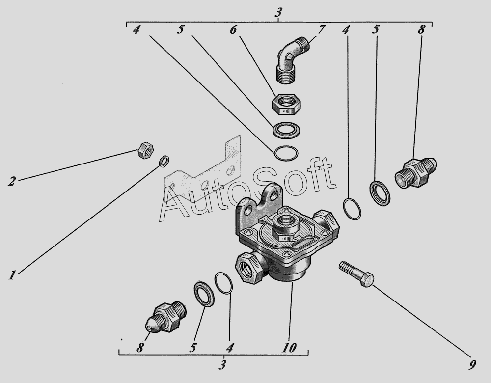 | КАВЗ | КАВЗ-4238 "Аврора" (2008) | 32053-3552324-01 | Штуцер угловой | Установка клапана быстрого оттормаживания заднего 4230-3518060 |