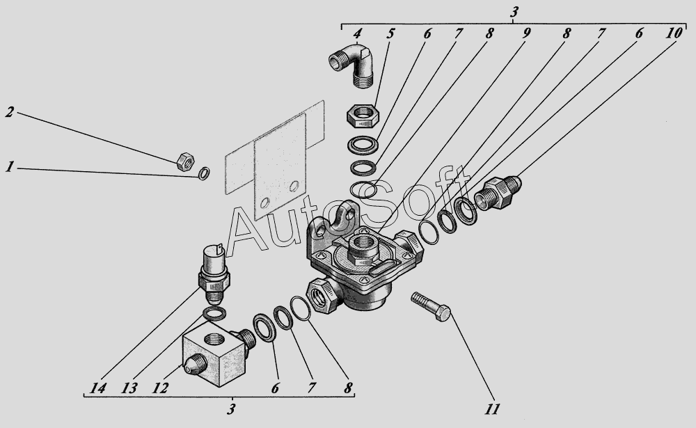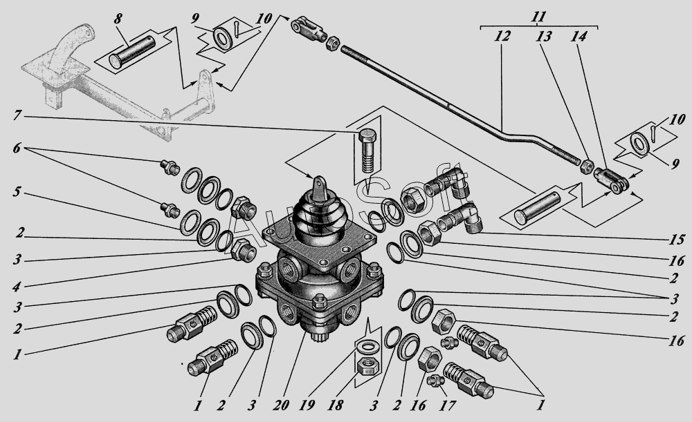 | ПАЗ | ПАЗ-4230 (2005) | 32053-3552324-01 | Штуцер угловой | Схема пневматической системы тормозов с пневмоаппаратами | |