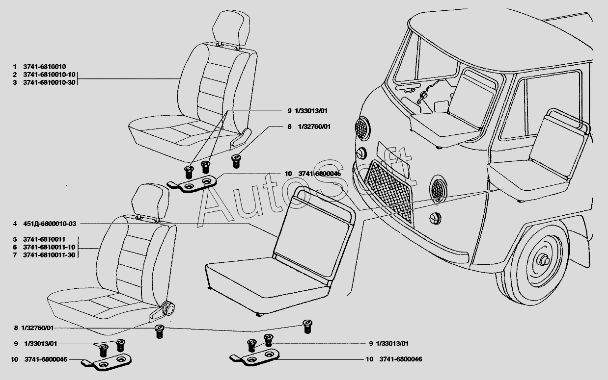 | УАЗ | УАЗ-37419 (2009) | 3741-6810010 | Сиденье переднее правое | Сиденье водителя |