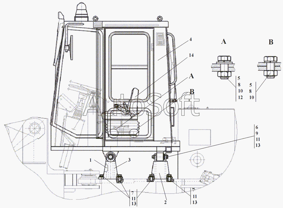 | Амкодор | Амкодор-6712B (2013) | УНВ102М.01.20.00.00 | Сиденье оператора | ВГ-1202Э.12.01.000 Кабина |