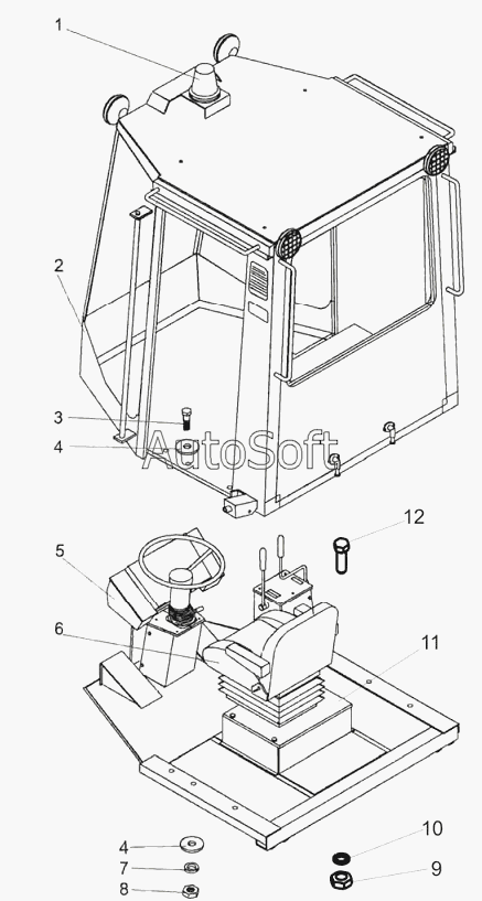 | Амкодор | Амкодор-6712А (2007) | УНВ102М.01.22.00.00 | Сиденье оператора | ВГ-1202Э.12.01.000 Кабина |