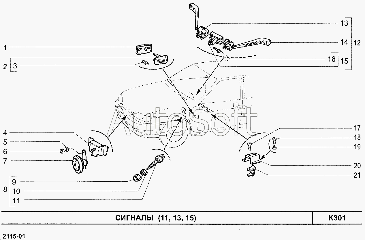 | ВАЗ | ВАЗ-2115 (2003) | 2106-3721010 | Звуковой сигнал высокого тона | Сигналы (11, 13, 15) |