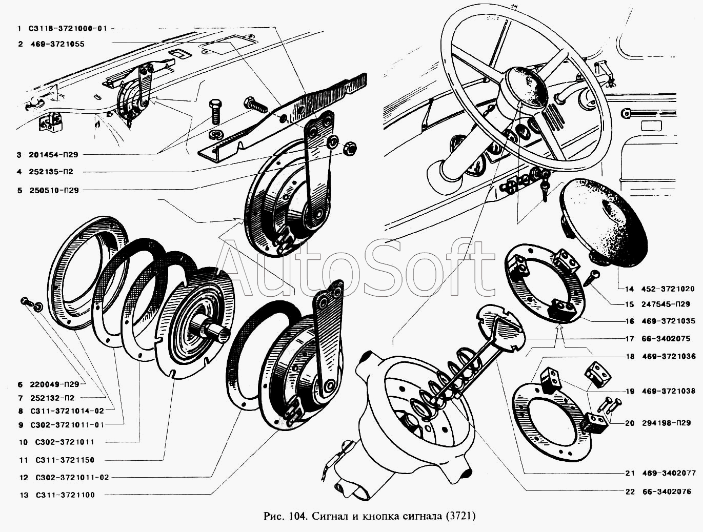 ГАЗ | ГАЗ-52-02 | 66-01-3721010 | Сигнал в сборе С311 | Управление рулевое, звуковой сигнал и переключатель указателей поворота | |