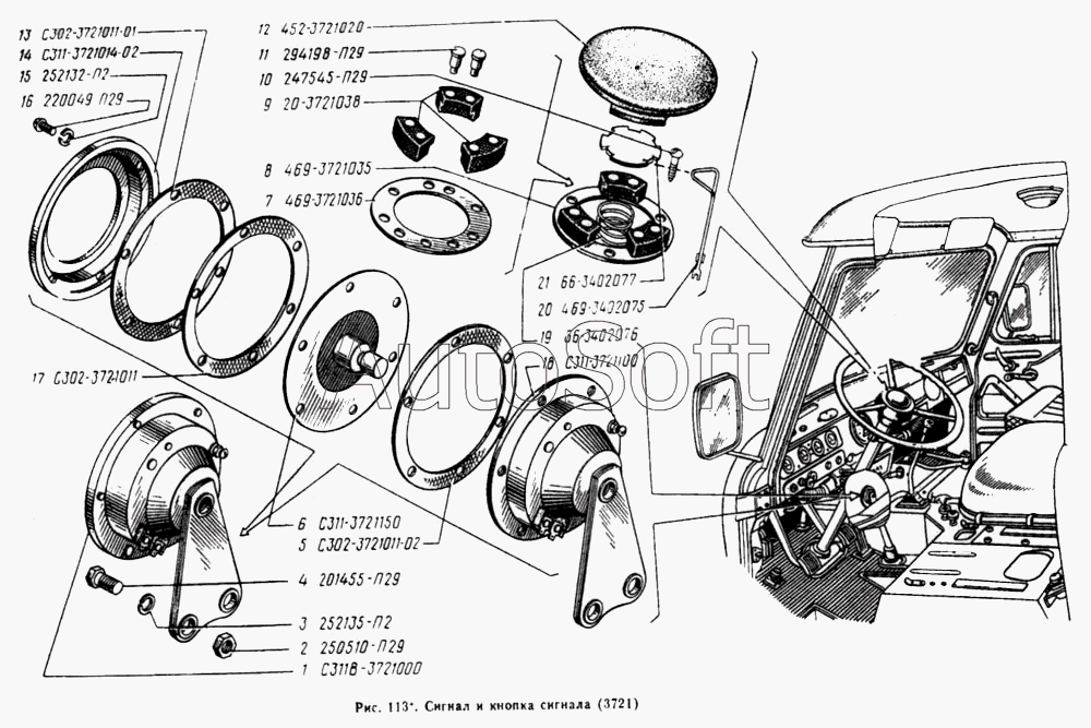 | ГАЗ | ГАЗ-52-02 | 66-01-3721010 | Сигнал в сборе С311 | Управление рулевое, звуковой сигнал и переключатель указателей поворота | |