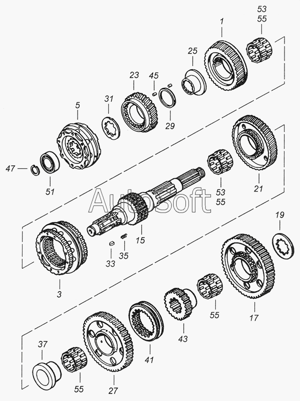 | Камский автозавод | 43253 (Часть-1) (2011) | 142.1701151 | Синхронизатор четвертой и пятой передач в сборе | 142.1701100 Вал вторичный |