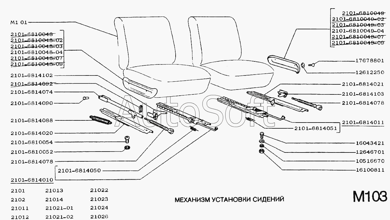 | ВАЗ | ВАЗ-2103 | 2101-6810049 | Облицовка левая синяя | Механизм установки сидений | |