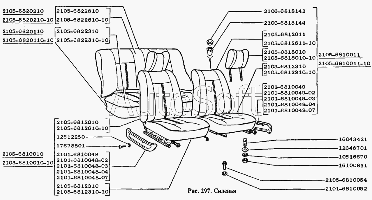 | ВАЗ | ВАЗ-2101 (1982) | 2101-6810049 | Облицовка левая синяя | Механизм установки сидений |