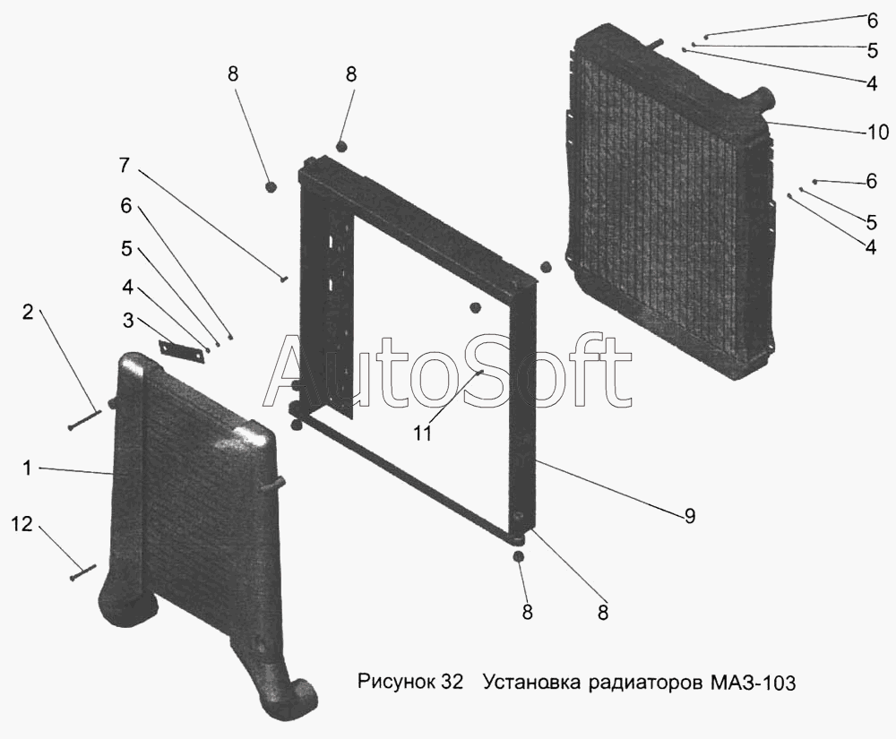 АМАЗ | МАЗ-103 (2000) | 50.10.230.735 RЕNАULТ | Охладитель наддува | Установка радиаторов МАЗ-103 |