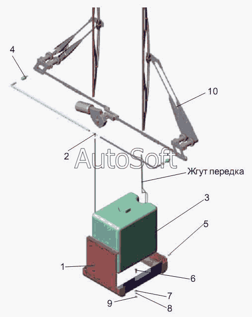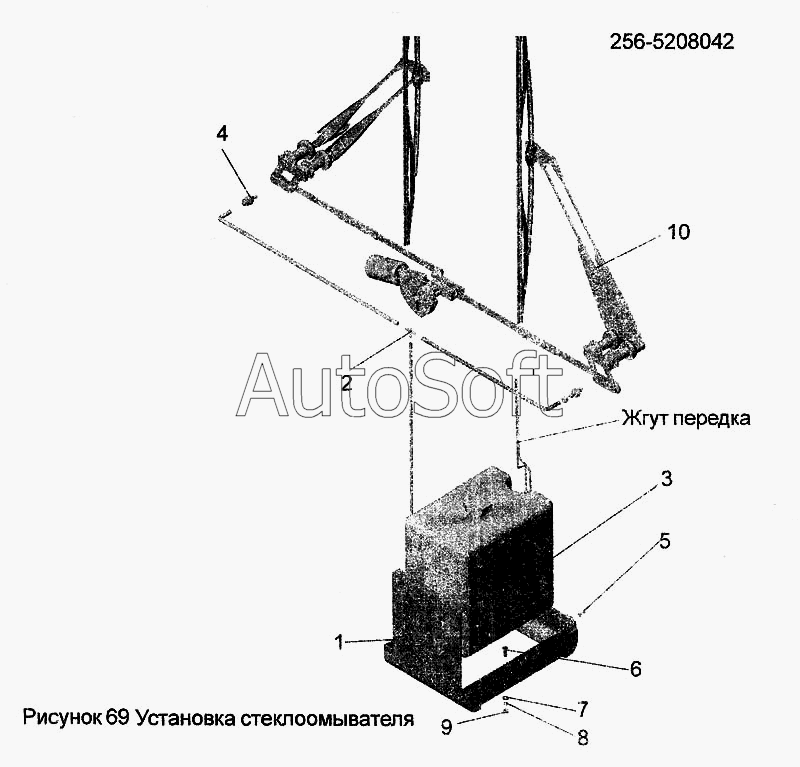 24В (м/ред. с кронштейном + трапеция + рычаги (2 шт.) + щетки (2 шт.)) (для АМАЗ-256)